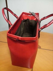 手縫いの口枠タイプのボストンです。 クラシック型の定番タイプです。 イタリアのヌメ革を使用しています。
